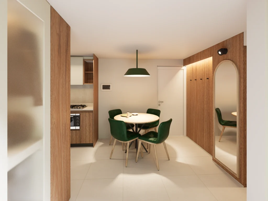 es un apartamento de 48 m² diseñado para demostrar que la comodidad y la amplitud no dependen del tamaño, sino de las decisiones de diseño. Un proyecto donde cada metro cuadrado se aprovecha al máximo, combinando funcionalidad, calidez y una estética minimalista inspirada en el Japandi.