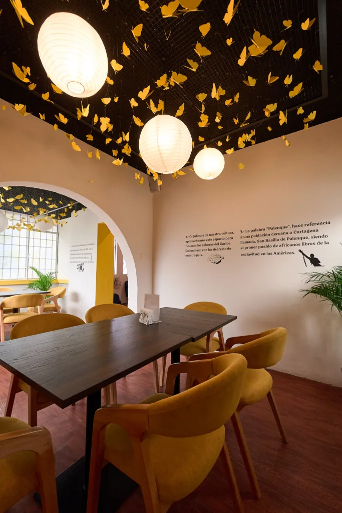 Así nació Palenque Comida Colombiana, un nombre que reafirma su identidad y su vínculo emocional. El diseño interior, por su parte, tradujo esa búsqueda en un espacio que cuenta historias a través del color, la atmósfera y la emoción.